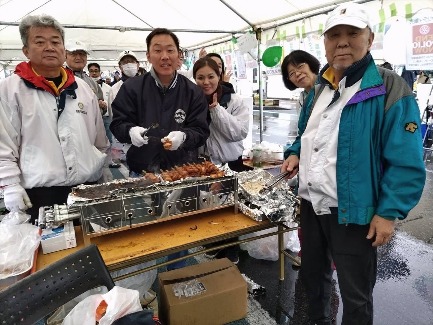 久喜市民まつりでは、青森県野辺地町直送活きホタテ販売およびホタテ串焼き、